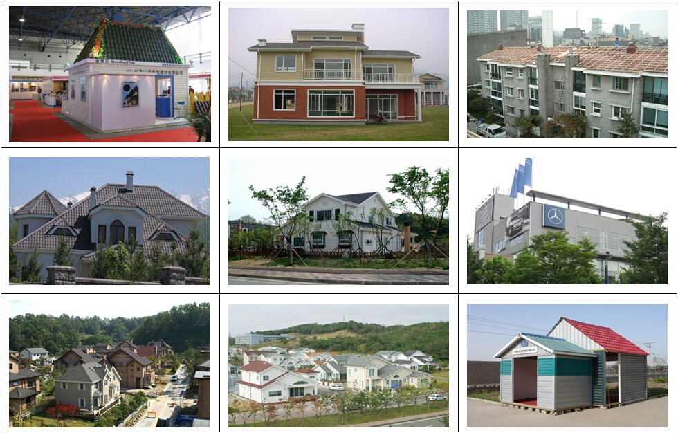 ♦ 外觀獨特。集傳統(tǒng)琉璃瓦的美觀高雅與現(xiàn)代彩鋼技術(shù)于一體。